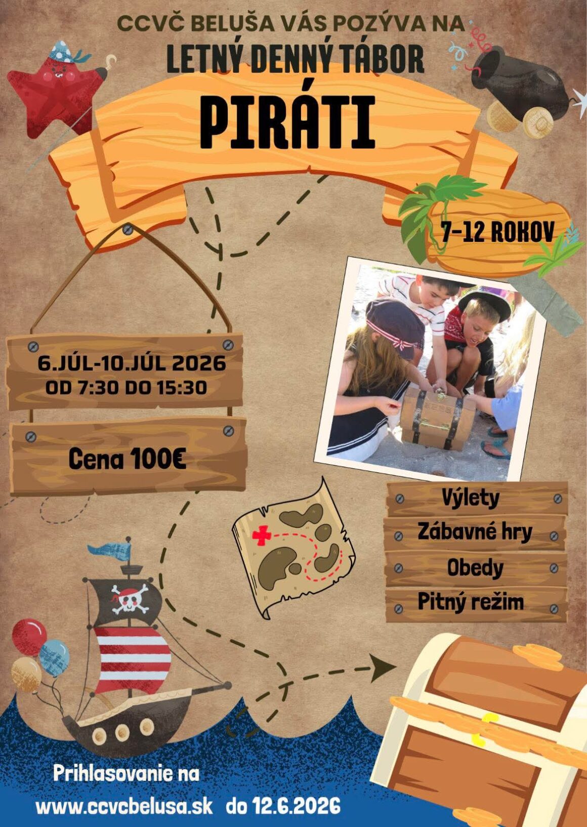 Denný letný farský tábor v CCVČ: naši mladí pripravili tábor pre deti našej farnosti od 7 do 12 rokov denný tábor od 6. do 10. júla. Téma: Piráti. Cena je 100 eur (v cene je obed, pitný režim, dva výlety).